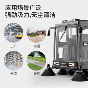 揚(yáng)子S12電動(dòng)掃地車(chē)配備雙吸風(fēng)電機(jī),采用過(guò)載欠壓保護(hù)裝置,使用更加安全,掃地車(chē)不僅配備了自主研發(fā)的邊刷電機(jī),而且使用聚氨酯實(shí)心胎和大容量的垃圾箱,配件品質(zhì)高,使用性能好。S12電動(dòng)掃地車(chē)配備了吸塵濾芯,避免了掃地車(chē)設(shè)備在操作過(guò)程中的清掃遺漏問(wèn)題,實(shí)現(xiàn)了電動(dòng)振塵;全封閉的駕駛倉(cāng),實(shí)現(xiàn)了防雨防塵,滿(mǎn)足在戶(hù)外道路和公園等場(chǎng)所的使用需求。